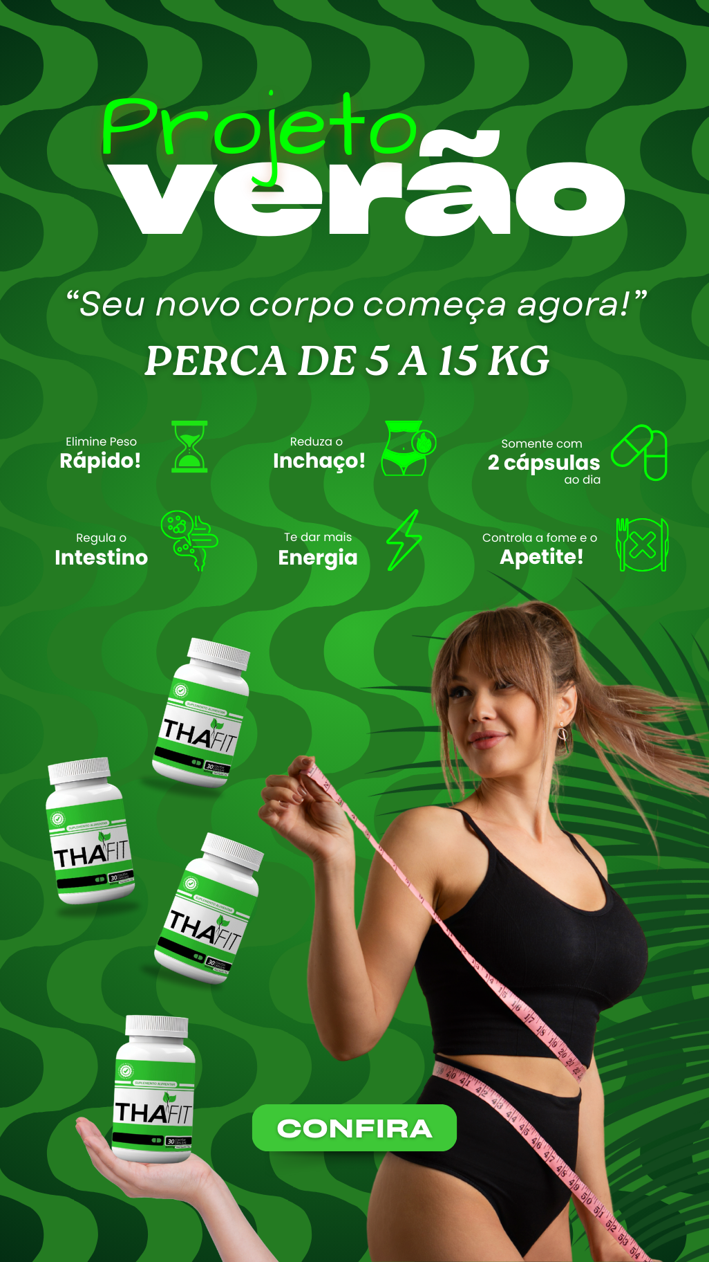 Com ingredientes 100% naturais e liberado pela ANVISA, Thafit oferece benefícios impressionantes e abrangentes, ajudando você a alcançar seus objetivos de perda de peso de forma rápida e segura.